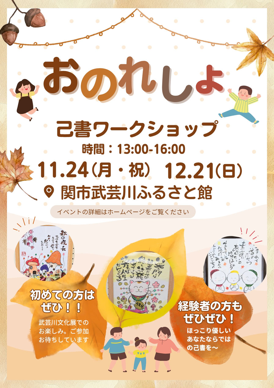 今回、武芸川文化展期間中に、己書(おのれしょ)の体験会(ワークショップ)を下記の日程で開催予定です。初めての方も経験者の方も、ぜひご参加をお待ちしています。