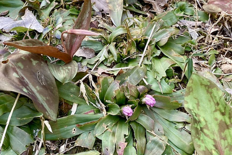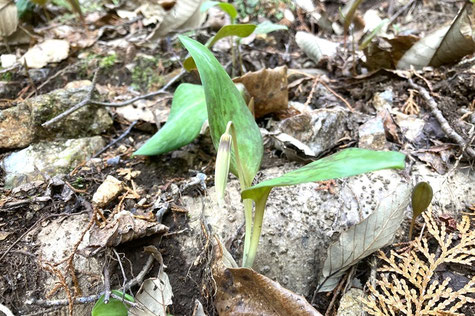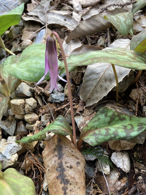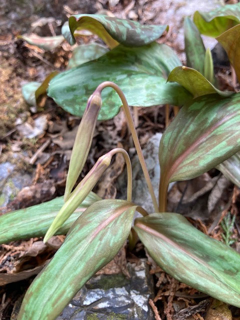 群生地全域にて、カタクリのつぼみを見かけることができました。