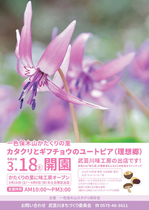 「一色保木山かたくりの里」は令和5年3月18日(土)開園します。